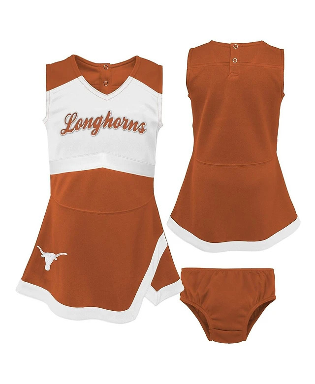 Girls Toddler Burnt Orange, White Texas Longhorns Two-Piece Cheer Captain Jumper Dress and Bloomers Set