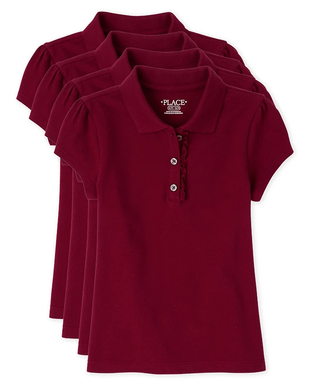 Girls Uniform Ruffle Soft Stretch Pique Polo 4-Pack