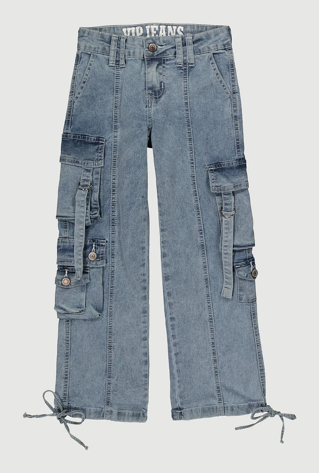 Girls VIP Cargo Pocket Jeans, Blue, Size 7