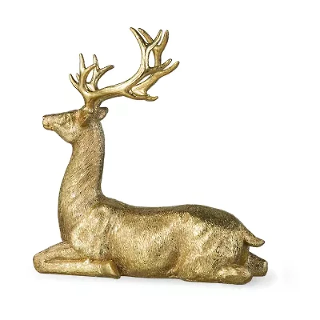 Glitzhome 11" Resin Lying Reindeer Christmas Tabletop Decor
