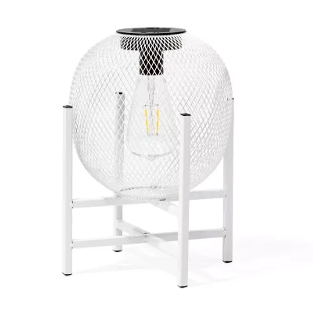 Glitzhome 11.5" White Metal Solar Decorative Lantern