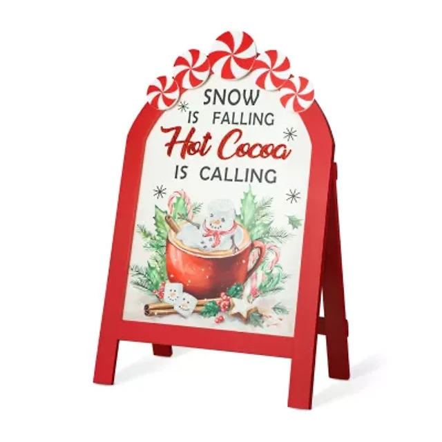 Glitzhome 24.25" Wood Peppermint Easel Christmas Porch Sign