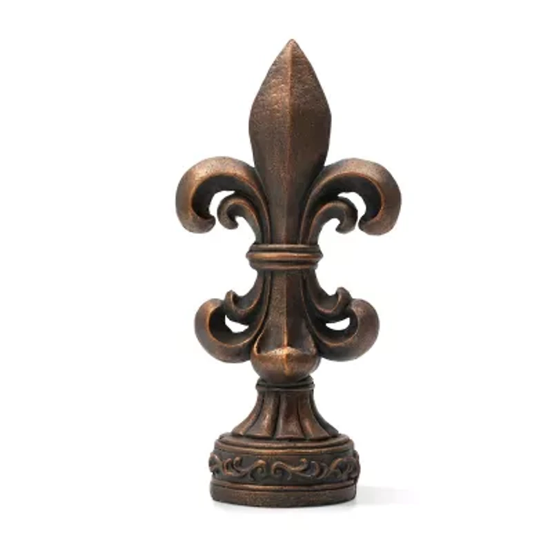 Embrace all the charm and whimsy of spring with this elegant Fluer De Lis figurine. This artistic sculpture featured with faux stone texture, handcrafted bronze finish and antique details gives a sense of vintage charm looks very vivid and realistic, which can blend in with different landscape to build a focal point. It constructed of high quality MGO and fiberglass that is very durable, which has a hefty appearance but light weight, easy to move. This pretty decorative garden statue is sure a perfect addition to your garden, patio, backyard and also indoors, as well as a great gift for your family or friends!
