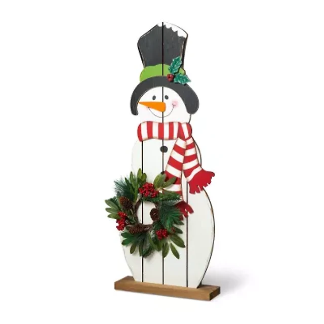 Glitzhome 36" Snowman With Floral Wreath Christmas Porch Sign