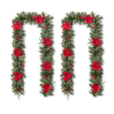Glitzhome 2pc 9ft Pre-Lit Red Berries Indoor Christmas Garland