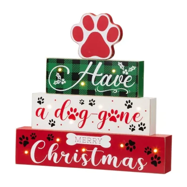 Glitzhome Pet Block Wood Sign Christmas Tabletop Decor
