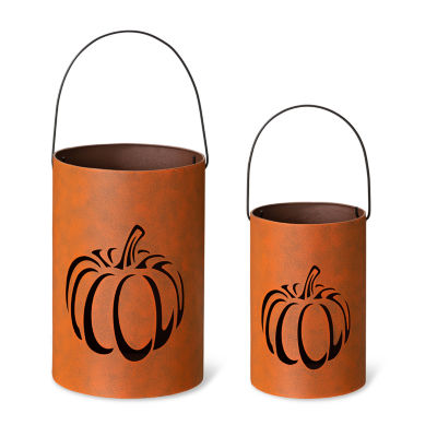 Glitzhome Metal Cutout Pumpkin Bucket 2-pc. Thanksgiving Tabletop Decor