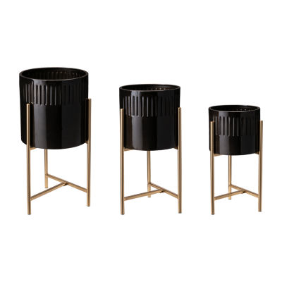 Glitzhome Set Of 3 Black Metal Planter Stands