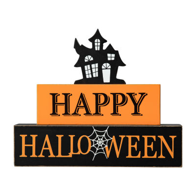 Glitzhome Wooden Haunted House Sign Halloween Tabletop Decor