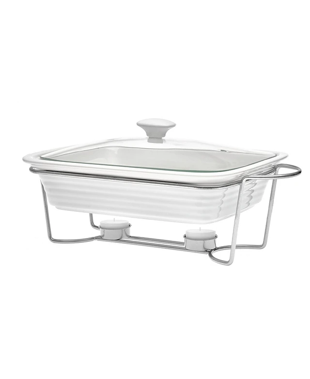 Godinger White Rectangle Double Porcelain Baker With Stand