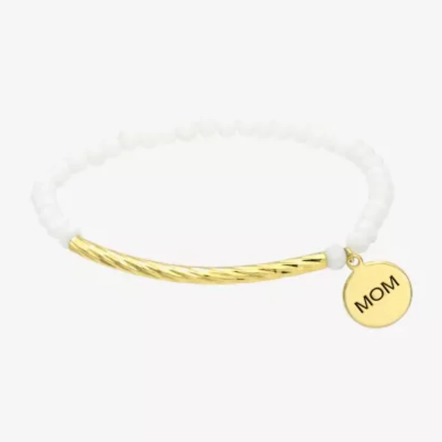 Gold Reflections Mom Womens White Crystal 14K Gold Over Brass Round Beaded Bracelet