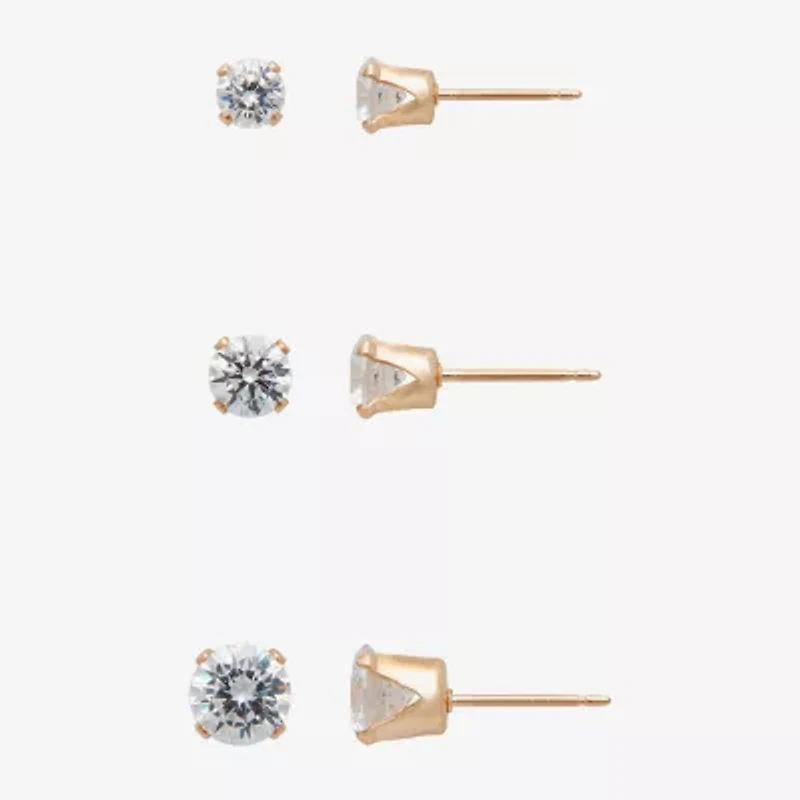 Gold Theory Womens Cubic Zirconia Round 3 Pair Earring Set