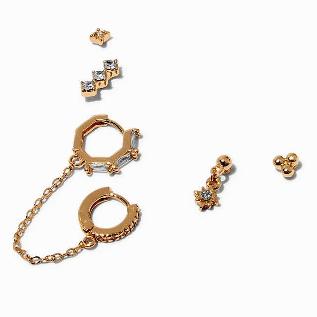 Gold-tone Cubic Zirconia Earring Stackables Set