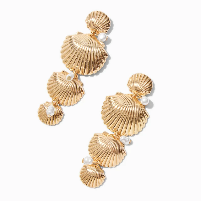 Gold-tone Seashell Pearl Disc Drop Earrings