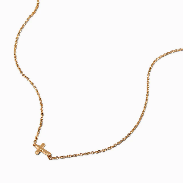 Gold-tone Mini Sideways Cross Pendant Necklace