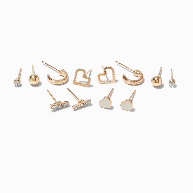 Mixed Studs & Heart Hoop Earring Set - 6 Pack