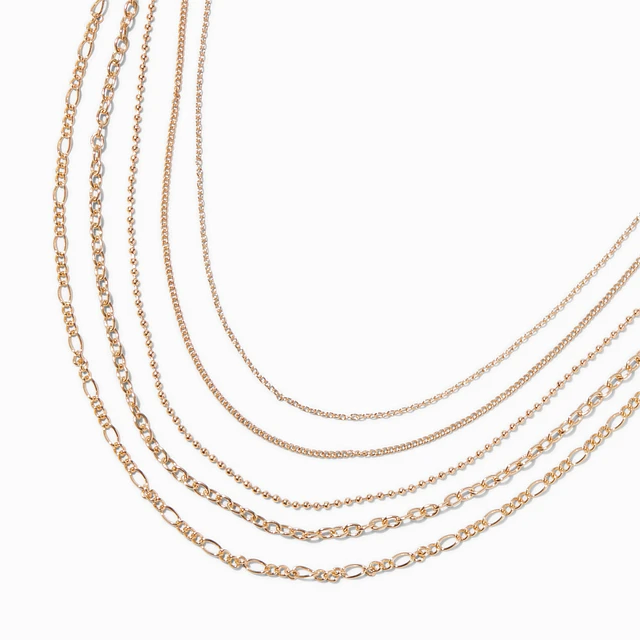 Gold-tone Multi-Strand Mixed Chain Necklace