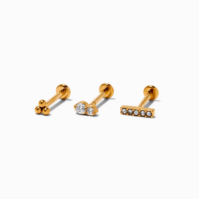 Gold-tone Titanium Cubic Zirconia 16G Threadless Tragus Earrings - 3 Pack