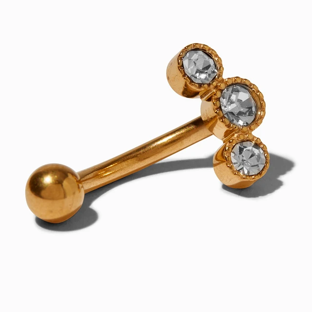 Gold-tone Titanium Cubic Zirconia Triple 14G Belly Bar