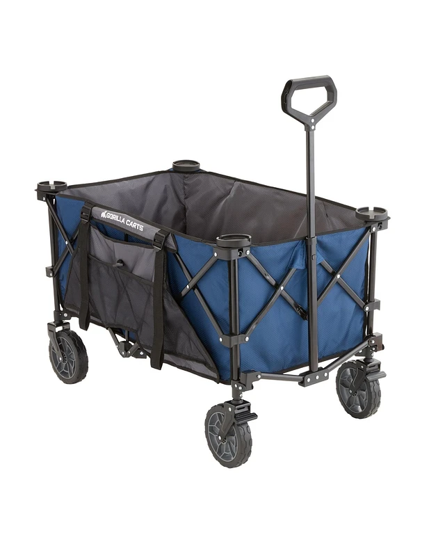 Gorilla Carts 7 Cu Ft Collapsible Outdoor Utility Wagon,Oversize Bed, Black