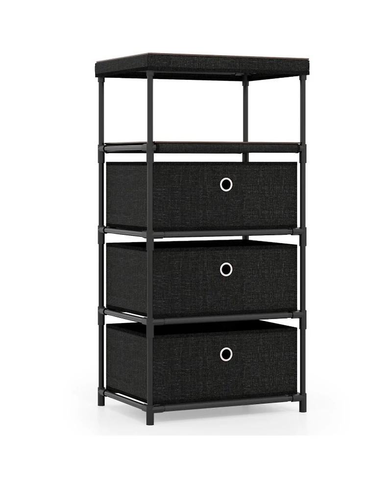 Thoughtfully designed for spaces that demand flexibility and order, this fabric storage tower pairs three removable drawers with an open shelf and wide countertop. A sturdy metal tube frame and Mdf top combine industrial durability with a clean, modern look fitting bedrooms, closets, or entryways. Two anti-tipping kits ensure secure everyday use, while metal handles allow quiet, effortless drawer access for quick organization throughout the home.