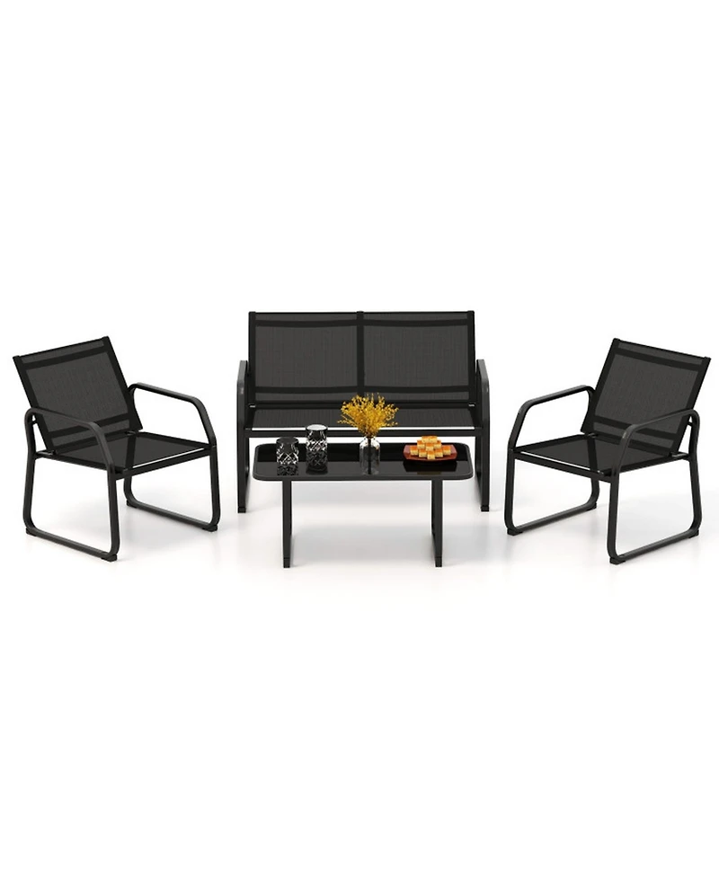 Gouun 4-Piece Patio Conversation Set with Breathable Fabric Seats and Glass Tabletop