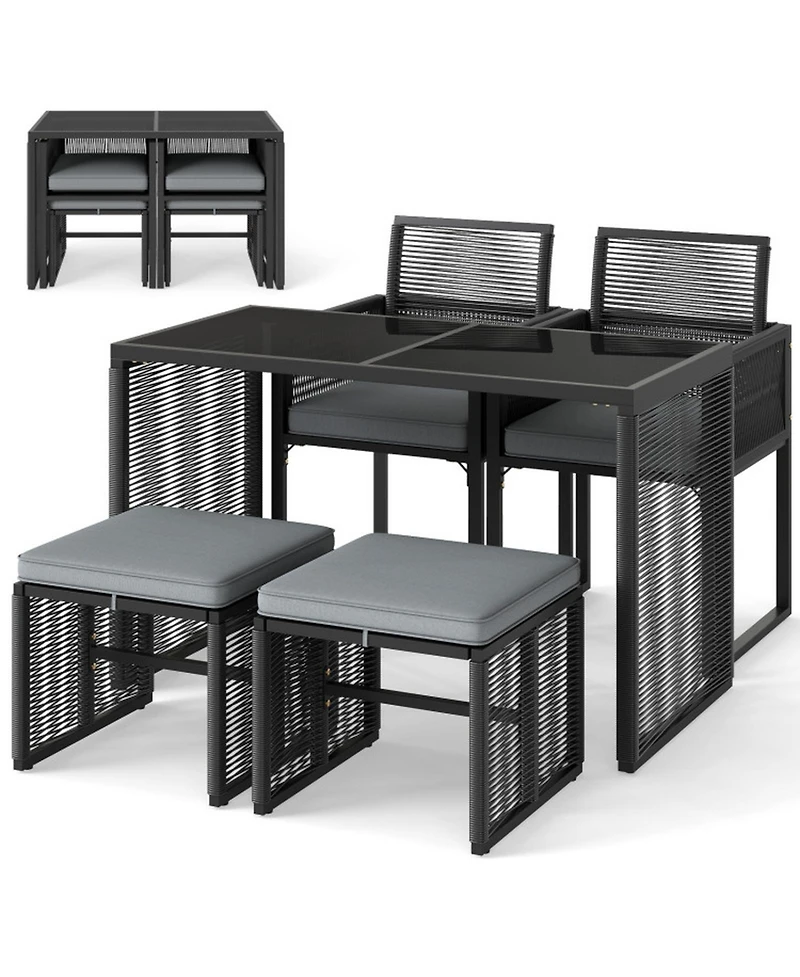 Gouun 5-Piece Outdoor Pe Rattan Patio Dining Set with Removable Cushioned Chairs and Ottomans