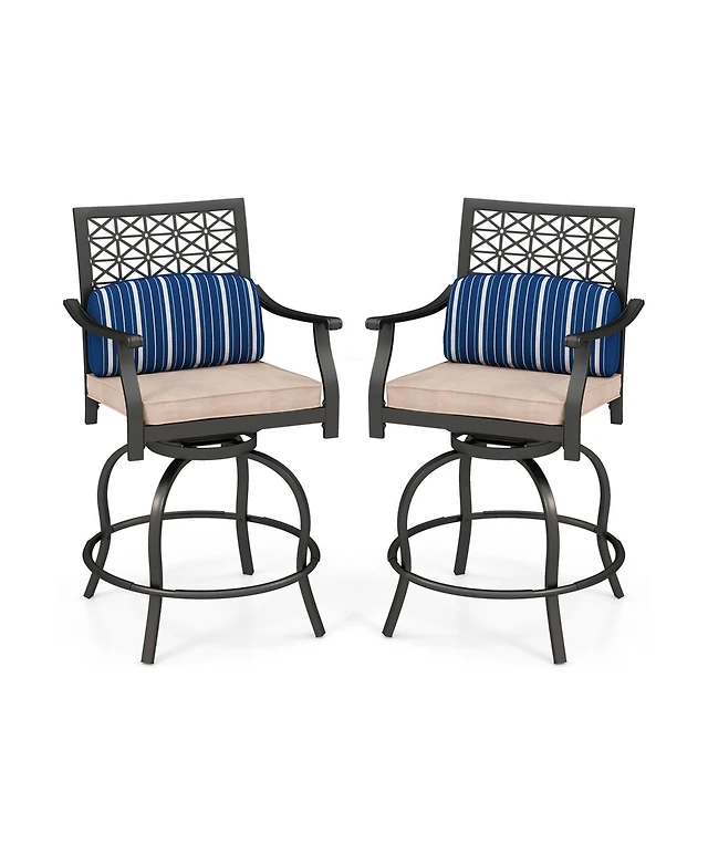 Patio Swivel Barstools Set of 2 with Soft Seat Cushions