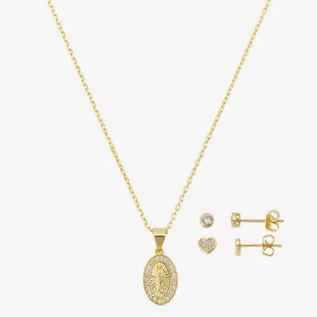Gratitude & Grace Virgin Mary Our Lady Of Guadalupe Girls Cubic Zirconia 14K Gold Over Brass Heart 3-pc. Jewelry Set