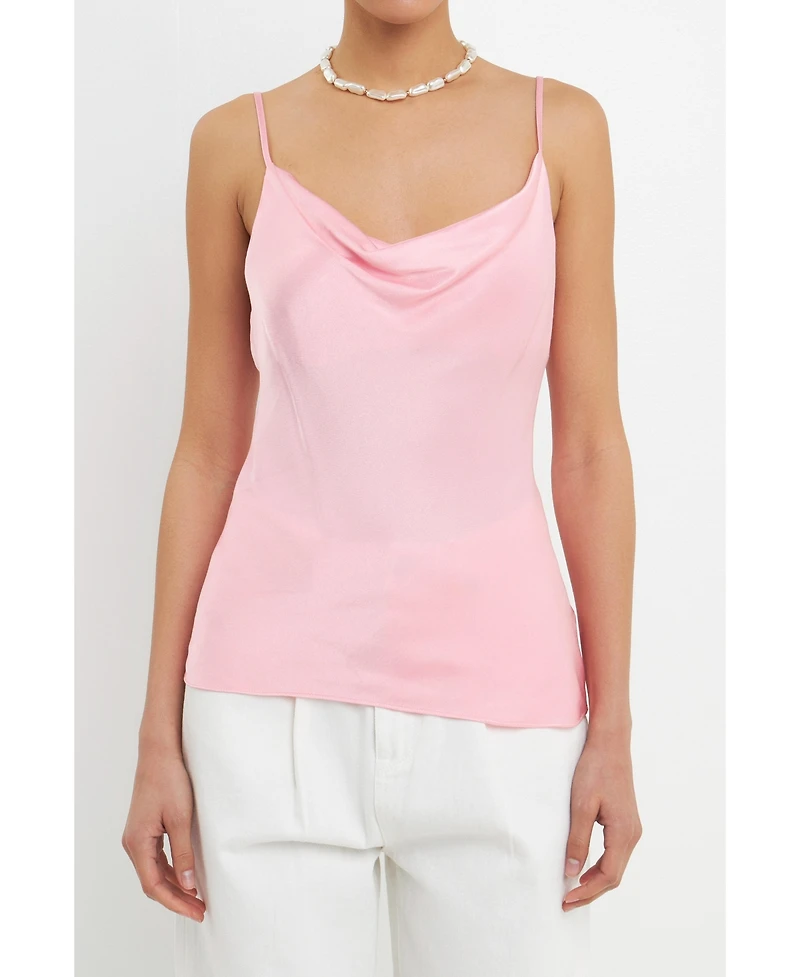 Our Satin Cowl Neck Top is perfect for any occasion. Pair with slacks for work, or tuck into your favorite mini skirt for a party. The adjustable spaghetti straps give you the ability to find the perfect fit, and the satin fabric falls into a classic cowl neck.
