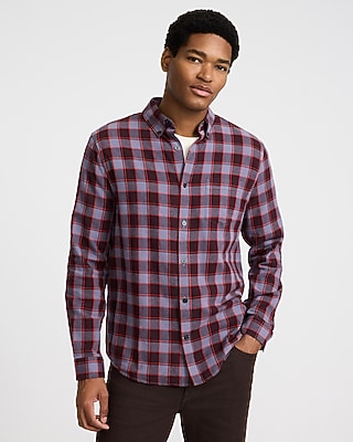 Our comfortable cotton stretch flannel shirt features a button-down collar, a patch chest pocket, and long sleeves.