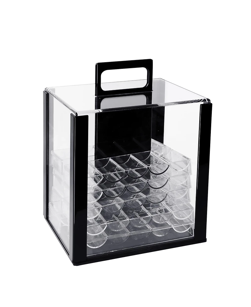 This durable poker chip case is made from thicker, heavy-duty acrylic with an enhanced frame. It provides complete protection, is resistant to chipping and breaking, and is sturdy enough for repeated use. It includes 10 stackable chip trays with a capacity of 1000 chips. The case is designed with a strong integrated handle, making it easy to retrieve chips by removing the outer cover. It is great for casinos, poker clubs, parties, or home casino nights.