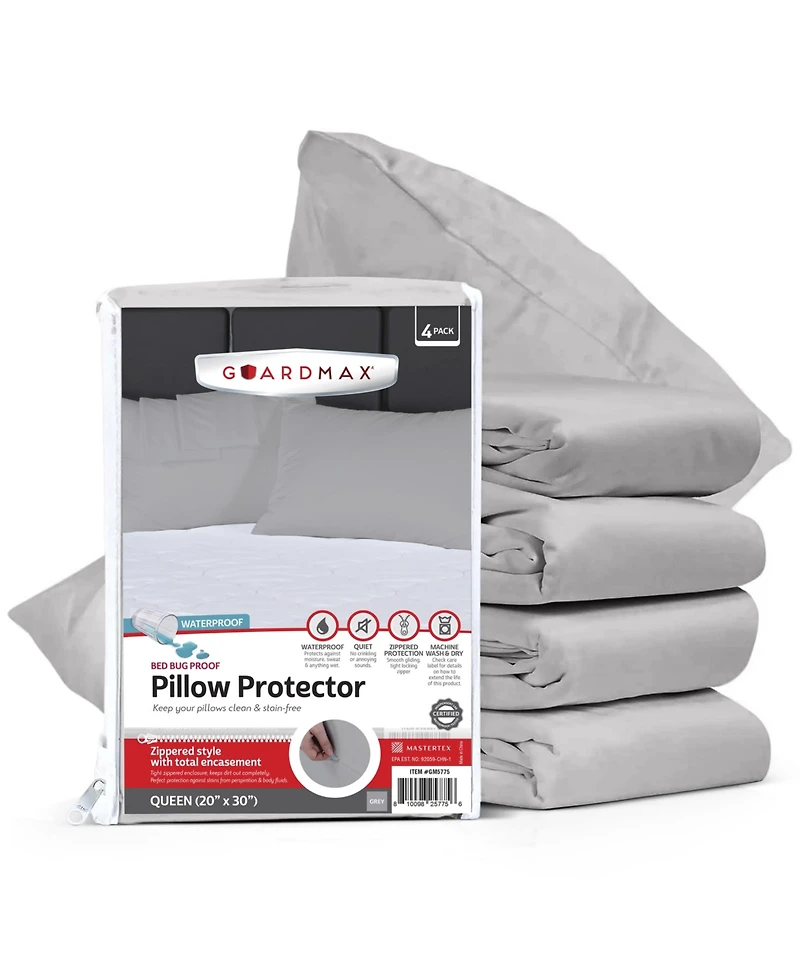 Guardmax Queen Size Waterproof Pillow Protector with Zipper (4 Pack)