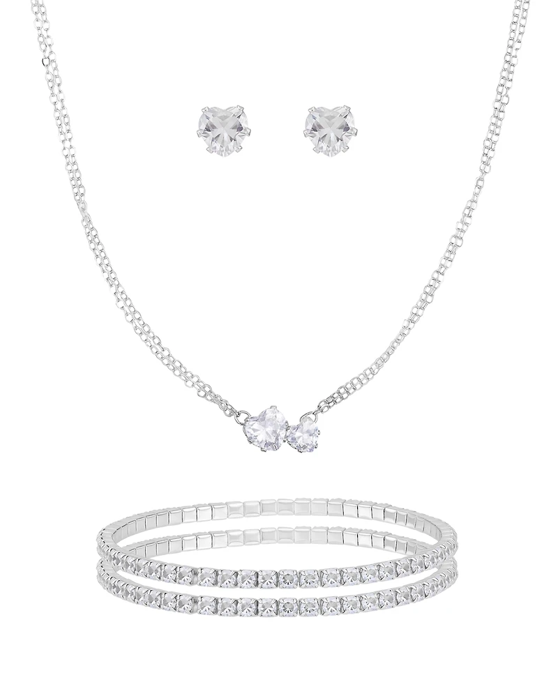 Guess 3-Pc. Cubic Zirconia Gold-Tone Heart Necklace, Stud Earrings, and Bracelet Gift Set