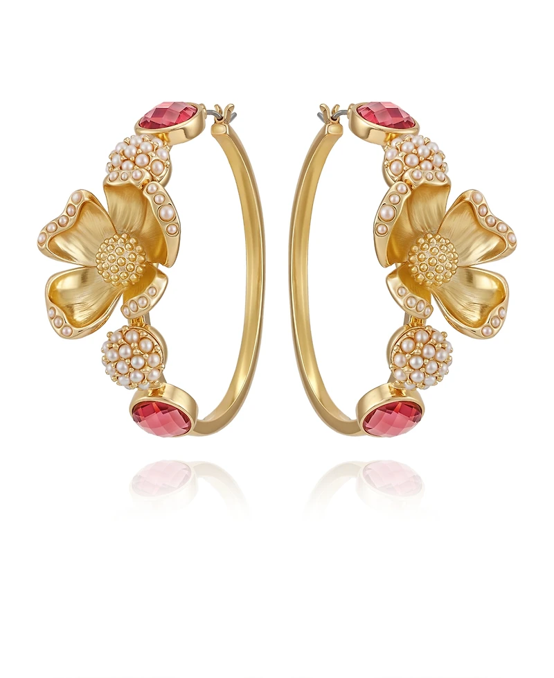 Guess Glass Stone Floral Hoop Earrings