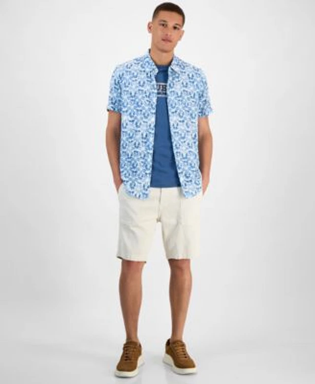 Guess Mens Tropical Print Shirt Triangle Logo Graphic T Shirt Sonny Low Rise Denim Shorts