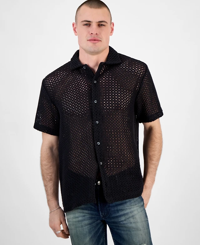 Guess Men's Relaxed-Fit Open Mesh-Knit Button-Down Shirt