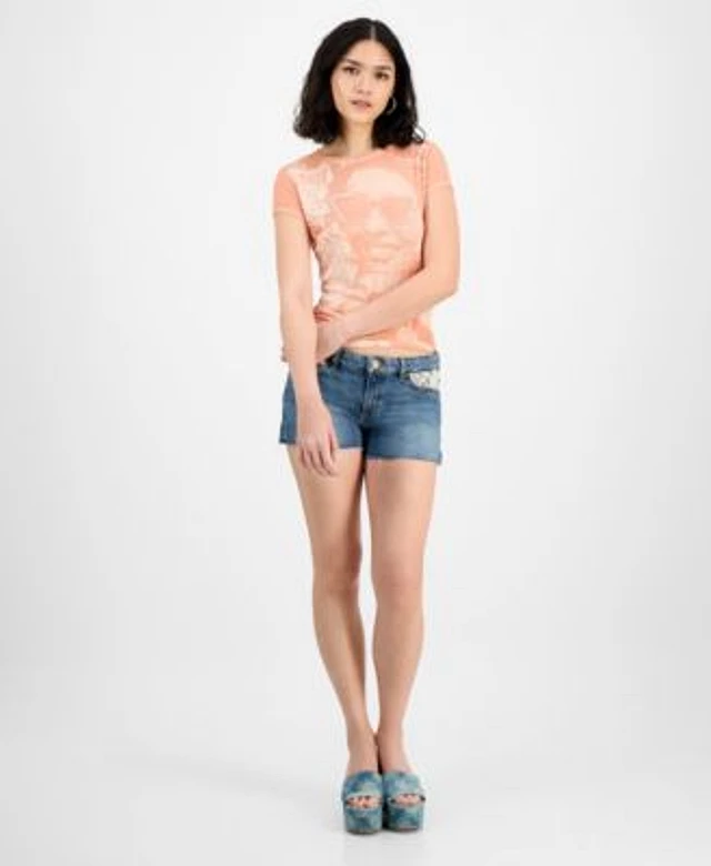 Guess Womens Short Sleeve Sunny Burnout Tee Lace Trimmed Denim Katie Shorts
