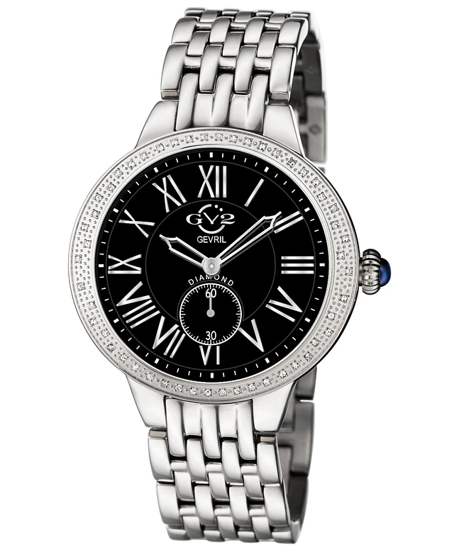 GV2 by Gevril Women's Naples Swiss Quartz Diamond Silver-Tone Stainless Steel Bracelet Watch 34mm