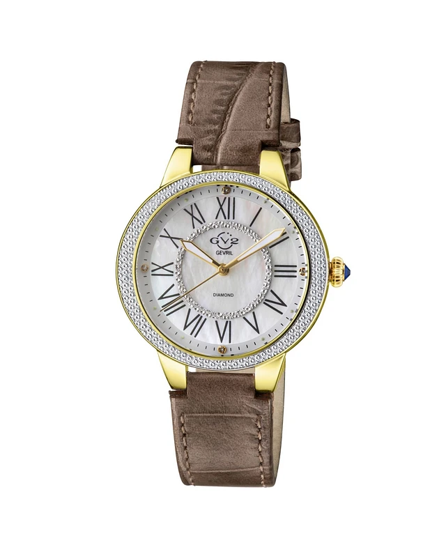 GV2 by Gevril Women's Astor Swiss Quartz Diamond Accents Genuine Leather Strap Watch 40mm