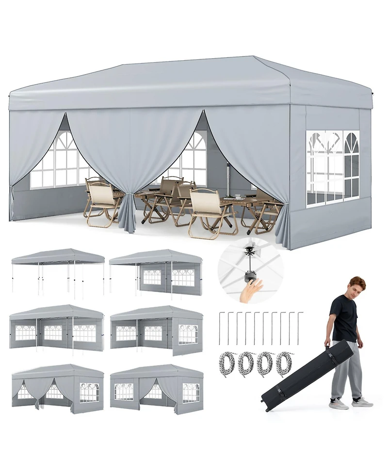 Gymax 10 X 20 Ft Pop up Canopy Tent w/ 6 Sidewalls Wheeled Bag Sandbags Stakes