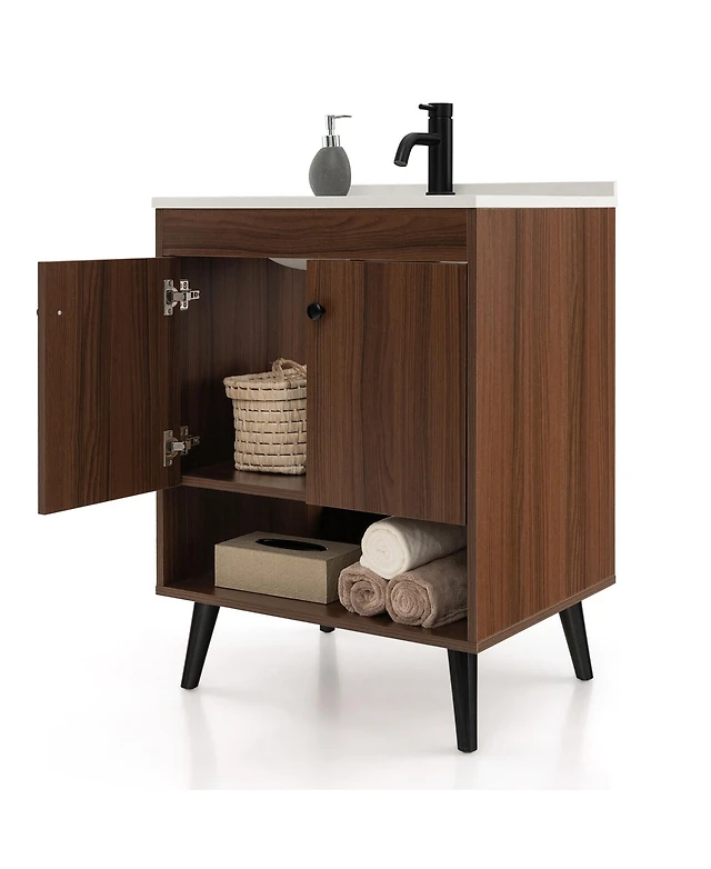 Gymax 25 Inch Wooden Bathroom Vanity Sink Combo with Open Shelf & Sink & Pop Up Drain