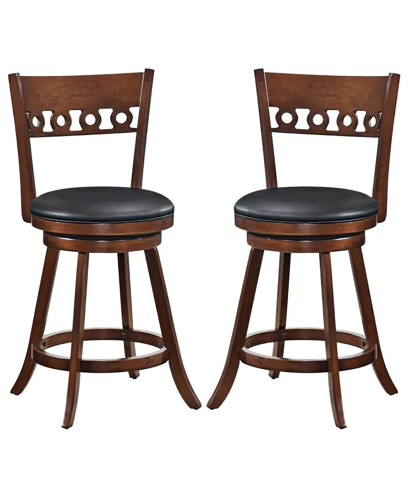 Gymax 2PCS 24.5'' Counter Height Bar Chairs Swivel Bar Stools w/ Rubber Wood Frame