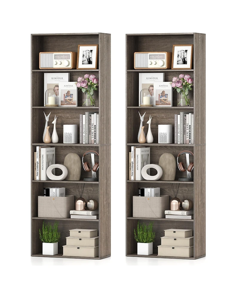 Gymax 2PCS 6-Tier Bookshelf w/Open Shelves Anti-Tipping Kits for Living Room Bedroom