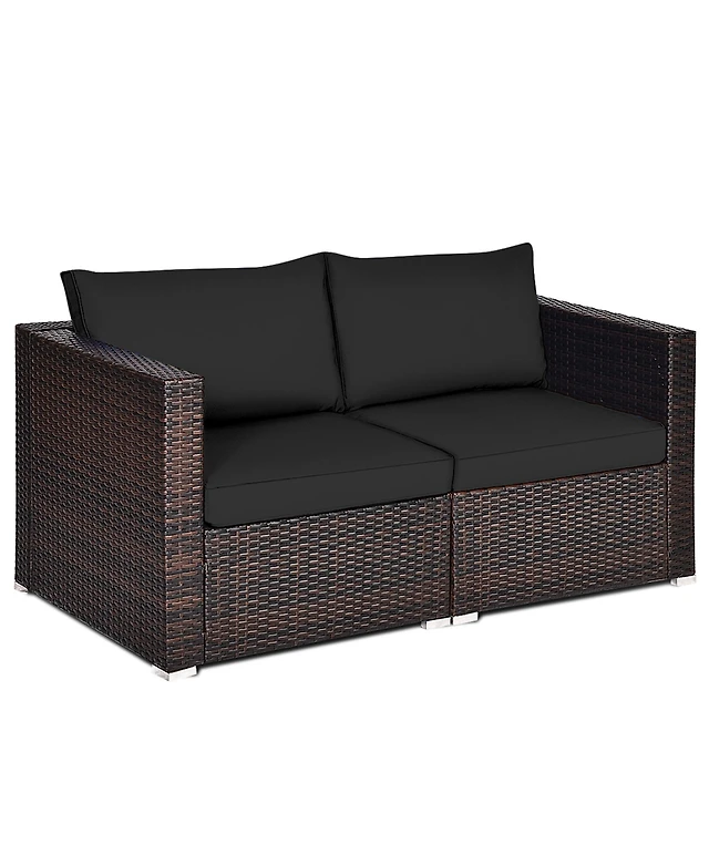 Gymax 2PCS Patio Sectional Armless Sofas Outdoor Rattan Furniture Set w/ Cushions
