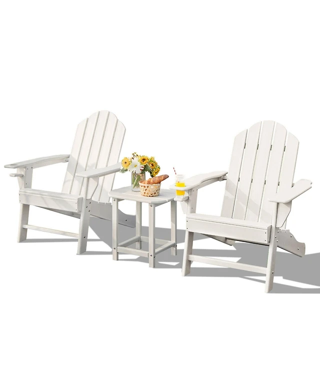 Gymax 3PC Patio Folding Adirondack Chair Side Table Cup Holder Poolside