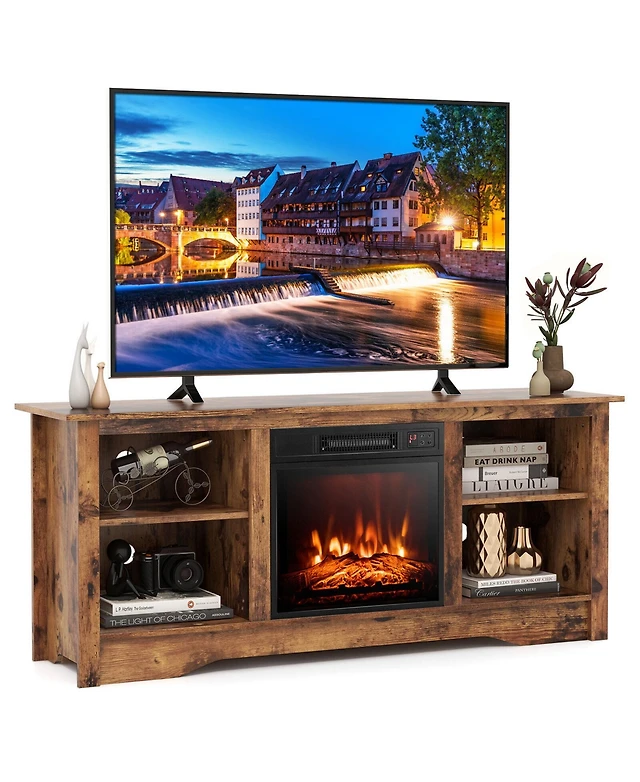Gymax 58'' Tv Stand w/18'' Electric Fireplace Heater, Adjustable Shelves, Remote Control