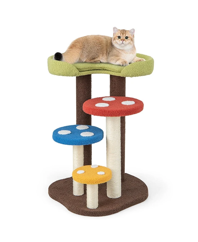 Gymax Cute Mushroom Cat Tree 35'' Tall Cat Tower w/ Sisal Scratching Posts Cat Condo