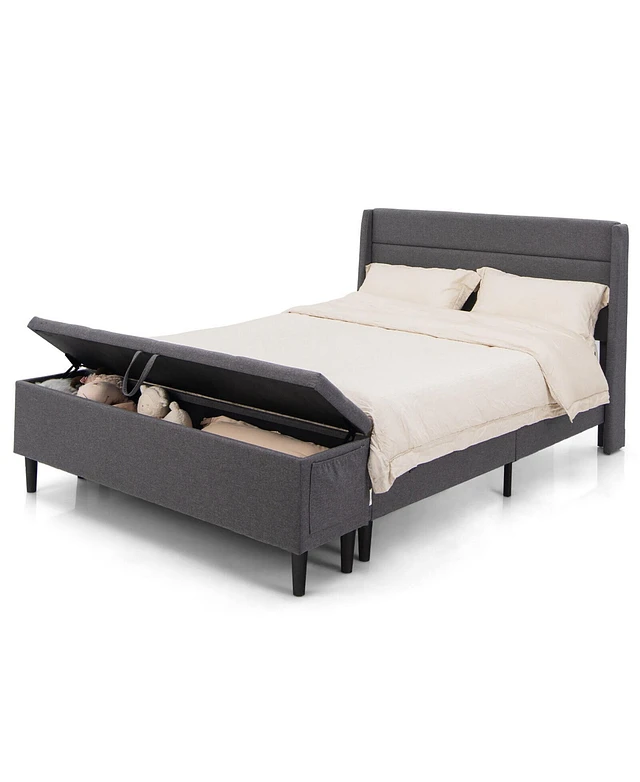 Gymax Full Upholstered Platform Bed Frame w/ Storage Ottoman Slats Support Grey