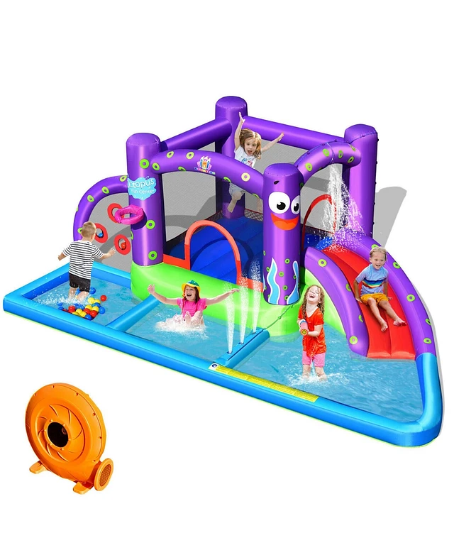 Gymax Inflatable Water Slide Castle Kids Bounce House w/ Octopus Style & 750W Blower